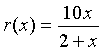 Solution: We see that the denominator is zero when x = -2. Thus, the domain of this function must exclude x = -2. Since r(0) = 0 and 10x/(2+x) = 0 implies that x = 0, the x and y-intercepts are easily seen to be zero. Thus, this function passes through the origin.