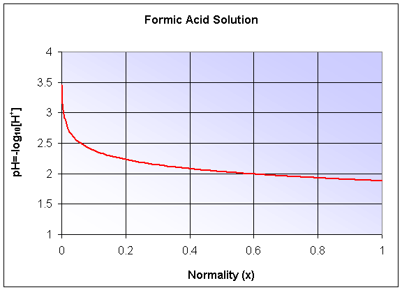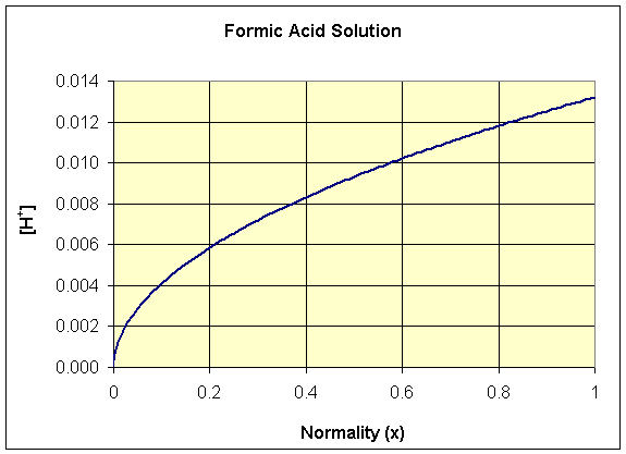 Since the equilibrium constant is fixed depending on the particular weak acid, we see that the [H+] is a function of the normality of the solution, x.