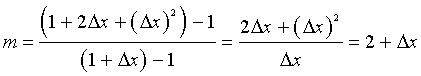Suppose we take the x value x = 1+ Dx for some small Dx. The corresponding y value y = (1+ Dx)2 = 1 + 2Dx + (Dx)2. The slope of the secant line through this point and the point (1,1) is
