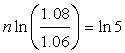 First divide each side by H0, then take the natural log of both sides and solve for n. The result is as follows: