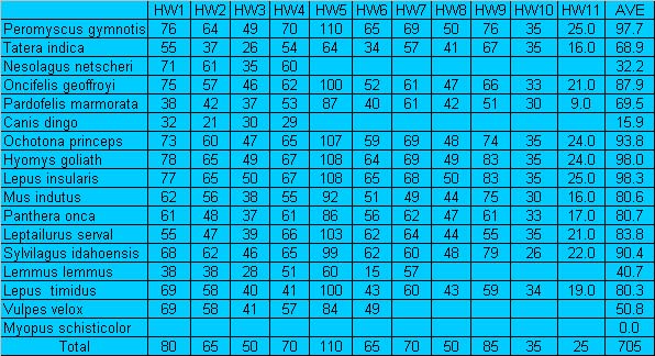 Below is the list of the current grades. The grade scale for this semester is 85-100 A, 73-84 B, 61-72 C, 50-60 D, Below 50 F. The second figure is the HW grades with the last column below showing your average. Homework currently is 60% of the grade. The exam, take-home exam, and take-home final is worth 40% of grade (with a factor of 5/4 multiplying the take-home final to bring it closer to parity with the mid-term score).